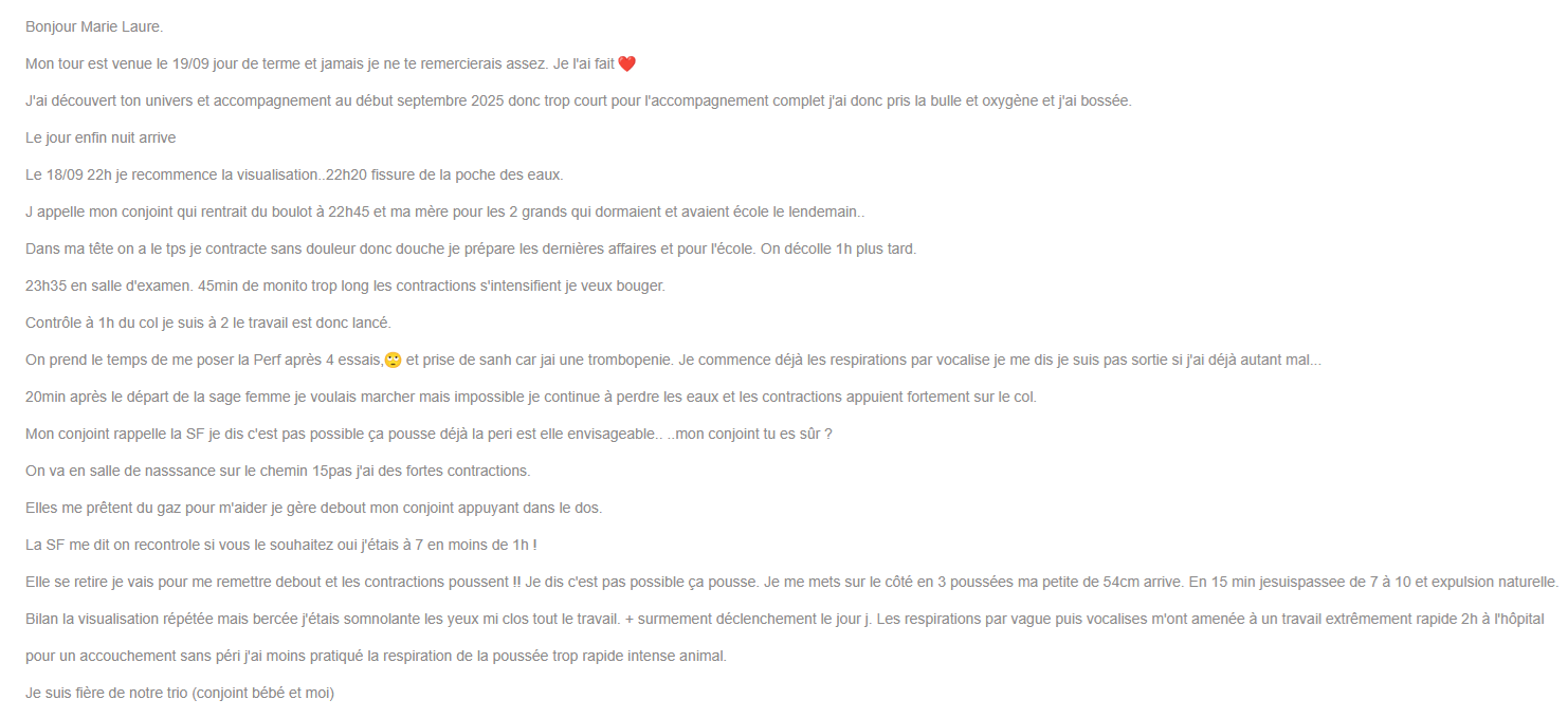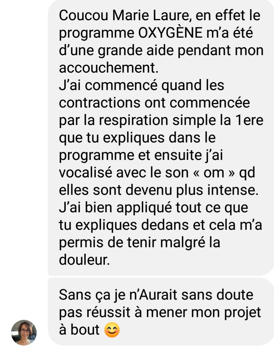J'ai aussi utilisé différentes respirations qui aident vraiment à accompagner les contractions, en préservant ton énergie et en restant pleinement active dans ton accouchement.
